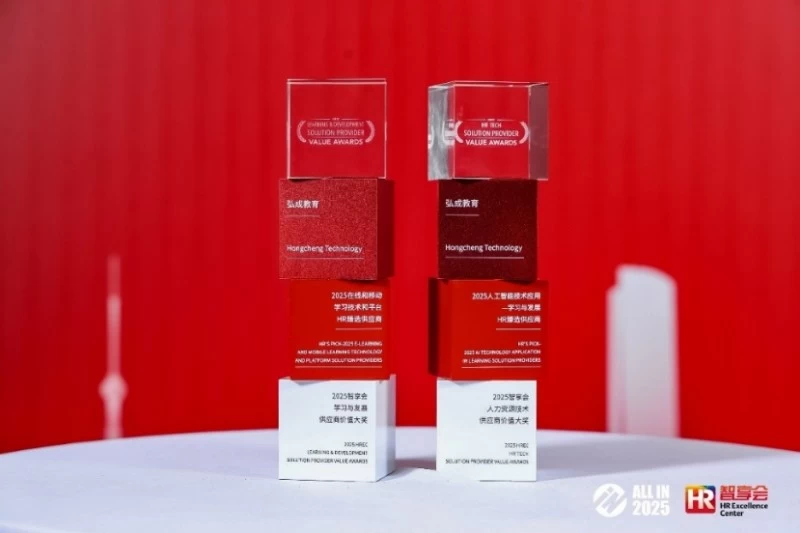 弘成科技发展有限公司应邀参加本次行业盛会,并凭借出色的产品服务能力与行业价值贡献,一举斩获“2025在线和移动学习技术和平台HR臻选供应商”和“2025人工智能技术应用——学习与发展HR臻选供应商”两项大奖。