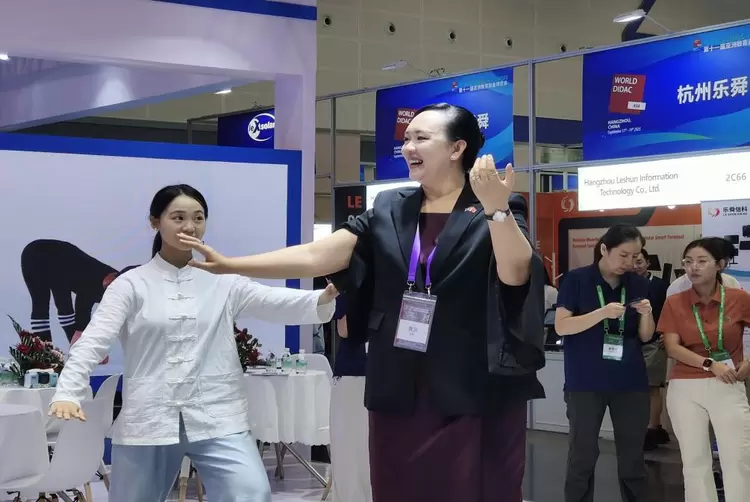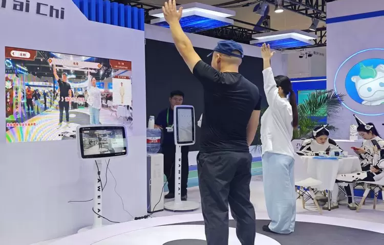 在展区中央,大沩智慧体育特别设置太极八卦表演与互动体验区,两名演练者动作行云流水,引来众多国际嘉宾驻足。这是大沩新品“太极(Tai Chi)”的全球首发。该系统通过AI视觉技术对练习者的动作进行实时捕捉与评估,并内置由太极大师录制的专业教学课程,涵盖太极、八段锦、南拳、北拳等多种传统项目。来自新加坡和马来西亚的教育工作者在体验后表示,科技让传统武术变得可视化、可量化,真正实现了文化传承与体育创新的深度融合。