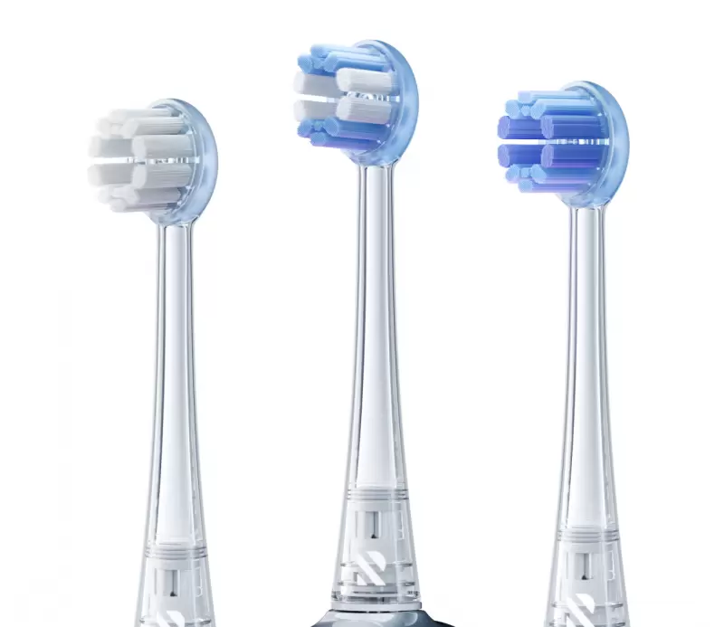 在延续第一代磁吸壁挂充电这一实用设计的基础上,气泡牙刷2.0每套标配三款专业刷头,全面满足多样化的口腔护理需求:软毛护龈刷头:极致细软刷毛,专为敏感牙龈和易出血人群设计;平衡多效刷头:分区结构科学配比,兼具清洁力与护龈效果,适合日常全面护理;钻石亮白刷头:采用美国杜邦Pro级钻石刷毛,专注去除牙渍,实现抛光提亮。