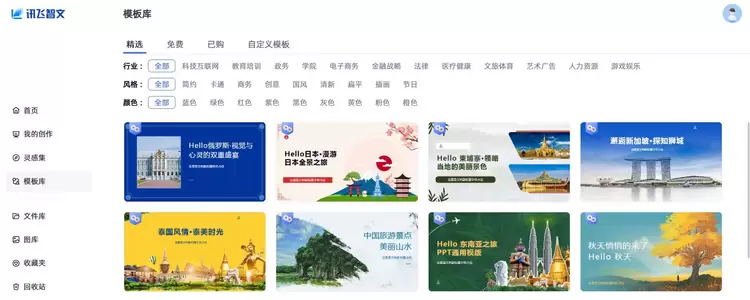 本届东博会期间,讯飞智文紧扣区域特色,专门设计并推出了包括新加坡、泰国、柬埔寨等东南亚国家风格在内的一系列模板。这些模板深度融合当地文化元素与视觉风格,使用户能够快速生成更贴合地域场景的 PPT 文档,高效完成多种跨境沟通与展示任务。