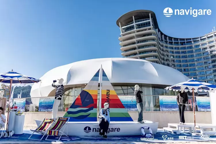此外,navigare意大利小帆船在现场举办海洋帆船服装展,趣味十足的海洋帆船元素吸引了众多游客和参赛选手打卡,充分展现了意式海洋休闲穿搭的魅力。