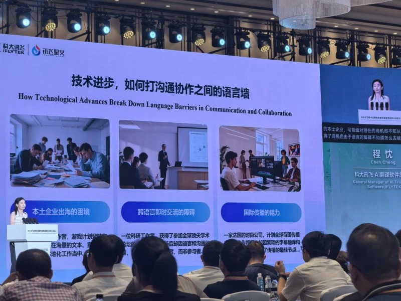 科大讯飞AI翻译软件总经理程忱在现场介绍,讯飞翻译SaaS平台整合“文本翻译、文档翻译、同声传译、音视频译制、人机协同翻译”五大核心能力,实现对跨境专业翻译场景的全覆盖:文本翻译译文精确且符合语境,满足专业表达;文档翻译支持100+语言且保原格式,适配商务文件处理;同声传译低延迟转译,保障跨境会议顺畅;音视频译制可处理字幕翻译改写与一键AI外语配音,降低内容出海成本;人机协同翻译则通过“AI+人工校对”,确保法律、医疗等专业内容的精确翻译。
