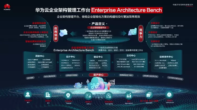 华为云将上述四大核心能力集成到华为云Enterprise Architecture Bench(EAB)平台中,并正式向客户与伙伴开放,免费使用。该平台可帮助企业精准评估智能化场景价值,再设计融入AI的4A架构,并一站式管理智能化方案交付,让企业高效便捷地实现智能化落地。