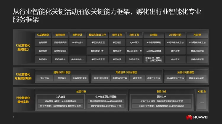 过去三年,华为云已在制造、金融、医疗、能源等30多个行业、500余个场景中积累了丰富的智能化实践经验。华为云致力于成为行业智能化的“黑土地”,专注树立行业灯塔总结方法论,做好大模型和工具链,将专业服务与工具全面赋能给伙伴与开发者,共同推动千行百业加速智能化转型。