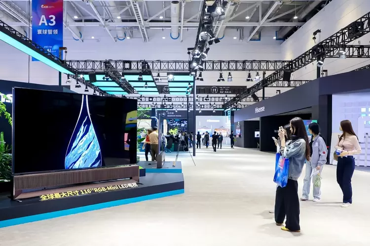 9月19日,由山东省人民政府主办的2025中国国际消费电子博览会(以下简称电博会)在青岛国际会展中心(红岛馆)正式开幕。海信携“百吋超大屏天团”强势登场。以RGB-Mini LED、激光显示、Micro LED三大核心技术为核心,集中展示了包括全球最大116吋RGB-Mini LED电视UX、RGB-Mini LED电视新品U7S Pro、最大可定制到271吋的Micro LED巨幕,以及全球首款100吋可卷曲激光影院等在内的“黑科技狠活”,不仅吸引大批观众驻足围观,更成为全球采购商重点关注对象,直接将电博会打造成海信超大屏显示技术的“专属秀场”。