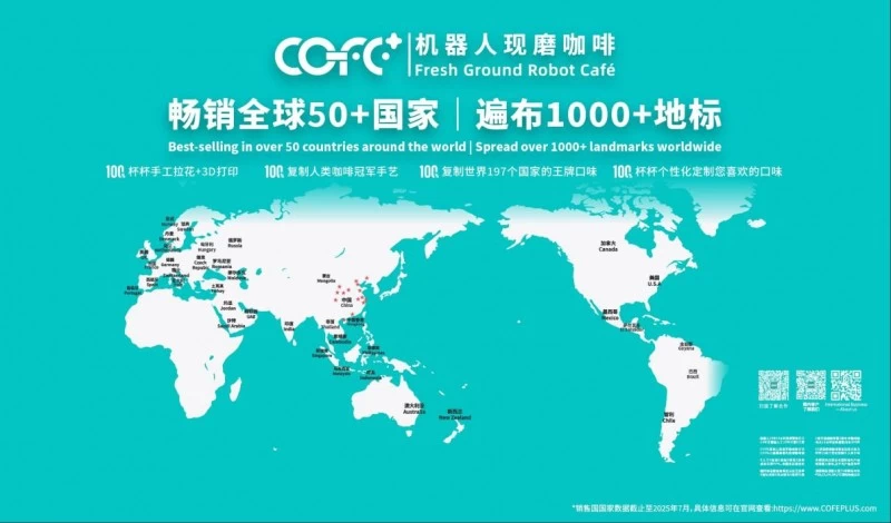 作为全球唯一通过美国FDA、欧盟、英联邦、中东等多地认证的机器人咖啡馆,COFE+已在全球50多个国家、超1000个点位经过长达6年的实际验证。自2019年首代产品推出以来,累计测试杯量超过350万杯,设备设计寿命长达10年,最低稳定产能突破50万杯,成为全球首个实现规模化量产与长期稳定运行的咖啡机器人品牌。