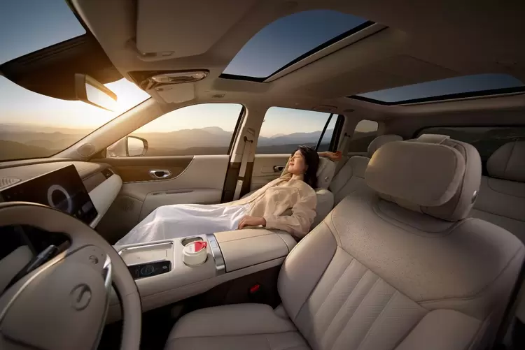 向往S9的二排座椅同样具备独立的按摩、通风和加热及电调,二排靠背支持137度(五座版)及148度(六座版)超大可调角度,每多1度,就给脊柱多一分保护,可坐可躺,让每位家人的旅程都惬意。二排同级最大17.3英寸超清娱乐屏,通过德国莱茵TÜV低蓝光及无频闪认证,孩子看动画不伤眼;老人看新闻更清晰。二排小桌板,孩子画画、老人喝茶、家长应急工作,全家分享零食,是全能的出行小帮手。