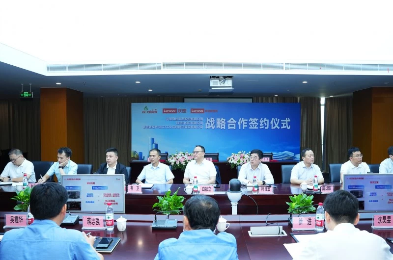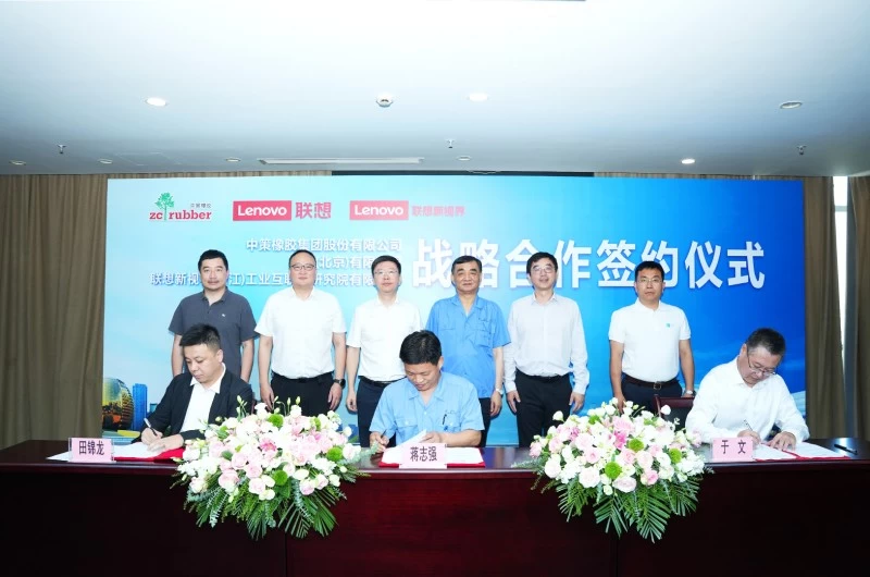 仪式上,钱塘区区委常委、副区长徐进,中策橡胶集团董事长沈金荣,中策橡胶集团股份有限公司副总经理沈昊昱,联想集团副总裁、联想新视界董事长白欲立,联想中国副总裁、东南大区总经理叶良宏,联想研究院人工智能实验室研发总监虞文明作为见签人出席见证,中策橡胶集团副总经理蒋志强、联想新视界华东大区总经理田锦龙、联想政企方案服务事业部东南大区总经理于文作为签约人正式签署战略合作协议。