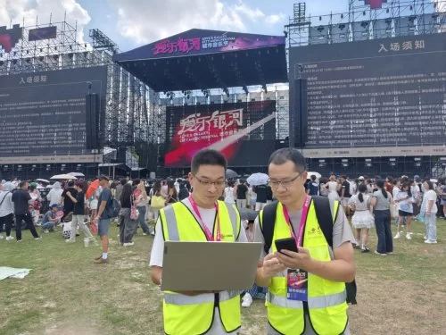 作为音乐节通信保障的核心力量,荆门联通高度重视,提前成立专项保障小组,结合场地布局与人流特点制定精细化保障方案。在网络覆盖方面,创新采用“分层布网”策略:在主舞台区域协同电信部署多座5G宏基站,重点支撑万人短视频上传等高频需求,确保乐迷分享现场精彩“秒发”无压力;在出入口、检票区等瞬时流量集中区域,布设2台4G+5G微基站,0.1秒级响应门票核验、网约车呼叫等高频操作,有效化解拥堵风险;同时,调配1辆应急通信车驻守停车场及周边区域,无缝覆盖离场导航、亲友联络等场景,构建起“主舞台强覆盖、关键区快响应、全域无死角”的立体通信网络。