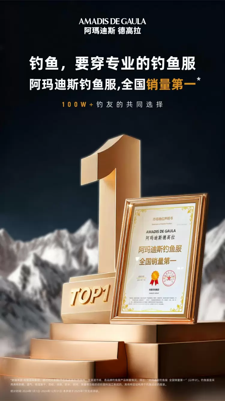 随着健康消费理念普及和户外运动需求增长,中国户外运动用品市场规模持续扩大,其中钓鱼服细分市场增速显著,2024年已攀升至3.8亿元。当前,专业钓鱼服市场正处于“功能升级与场景细分”的关键阶段,消费者不再满足于基础防护,而是追求“科技适配场景、设计贴合需求”的高端产品,这一趋势下,阿玛迪斯凭借前瞻性布局,构建起难以撼动的竞争优势。凭借卓越产品力,阿玛迪斯2024年销售量,全国排名第一,成为钓友心中的专业之选。
