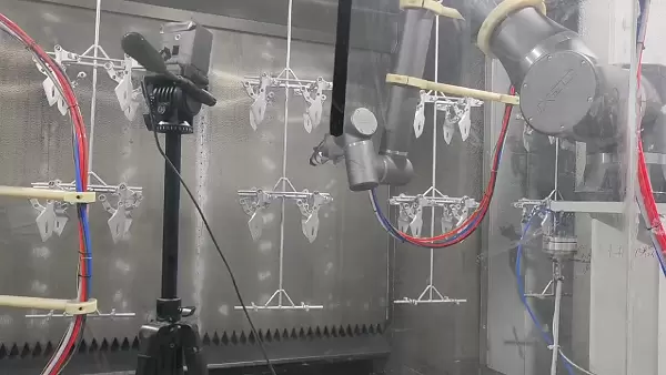 例如,在某自行车零部件企业生产现场,人工通过VR示教喷枪,记录不同工件的喷涂轨迹;光栅自动识别来料工件类型,降低编程调试难度;机械臂根据来料工件类型,调用人工示教好的喷涂轨迹,已实现多品种工件混线自动化喷涂。