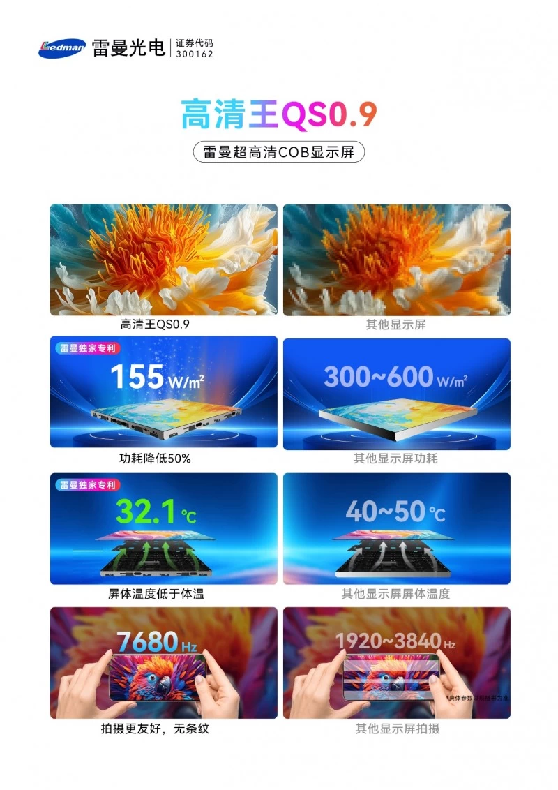 当8K超高清显示成为LED行业的未来趋势,如何让 “巨幕沉浸式体验” 突破概念、落地应用?LED 显示屏行业首家A股上市企业、技术引领者雷曼光电,今天全新推出的下一代高清王COB系列显示产品(主推型号 QS0.9),给出了清晰答案。
