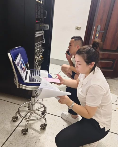 转战毗邻的某机动车综合检测有限公司,团队迎来新的考验。面对三位需求明确、注重效率的年轻股东,团队迅速进入状态,用简洁高效的沟通厘清需求。然而,装机调试过程中,设备兼容性问题、网络信号干扰等突发状况接踵而至。正午时分,检测站机房内温度超 40℃,汗水浸透了团队成员的工装,却丝毫未动摇他们的决心。技术骨干现场查阅资料、远程联动后台支撑,团队成员分工协作、默契配合,凭借扎实的技术功底和高效的协作能力,逐一化解难题。当最后一台设备调试完成、环保检测系统顺利运转时,客户由衷的点赞,成为高温里最动人的回馈。