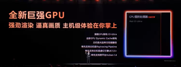 接着是“发动机”。全新G1-Ultra旗舰GPU将性能与能效一起推进:峰值性能飞跃33%,同时功耗节省高达42%。一句话——画面更狠、续航更稳。配合GPU Dynamic Cache架构,GPU可同时联通系统缓存与内存,在《绝区零》等重载手游中,每秒可节省约600兆带宽,功耗再降约60毫安,数据流动更顺、更省,帧率曲线更像“直尺”而不是“过山车”。