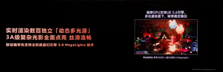 引擎生态同样领先一步。它成为移动端首款支持虚幻引擎5.5 Nanite与5.6 MegaLights的旗舰平台:前者让几何细节呈指数级暴涨,可实时渲染千万量级几何模型;后者把手游光源渲染从“个位数”推到“数百个”,复杂场景不再“糊作一团”,材质、体积光、反射层层叠加,手机屏幕也能呈现电影级空间质感。