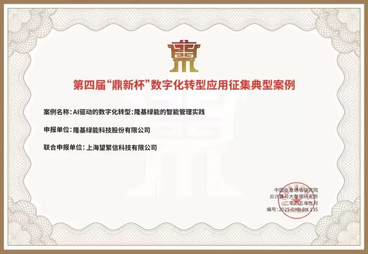 近日,在中国通信标准化协会主办、中国信息通信研究院(以下简称“中国信通院”)承办、中国通信企业协会支持的“2025(第五届)数字化转型发展大会”上,上海望繁信科技有限公司(以下简称“望繁信科技”)喜迎双重荣誉:一方面,连续两年成功入选中国信通院发起的 EP-Link智能流程推进计划成员单位;另一方面,与隆基绿能科技股份有限公司(以下简称“隆基绿能”)联合申报的案例《AI驱动的数字化转型:隆基绿能的智能管理实践》荣获 第四届“鼎新杯”数字化转型应用典型案例。