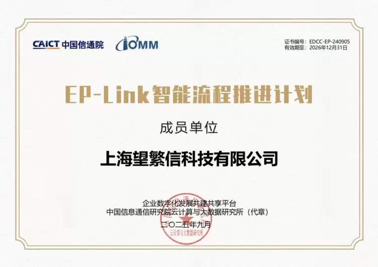 - 望繁信科技入选中国信通院“EP-Link智能流程推进计划”成员单位