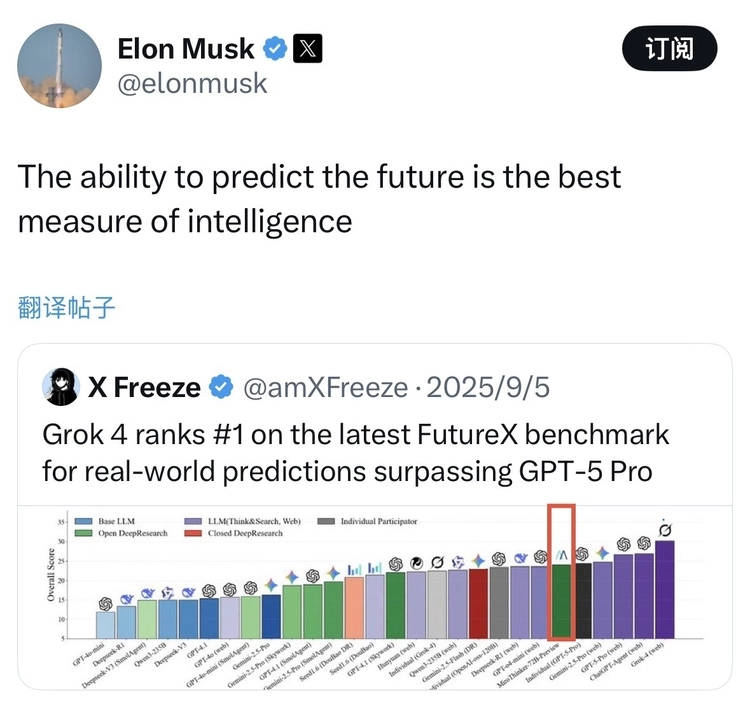 首次参与打榜,Grok取得第一名,MiroMind为开源模型的第一。马斯克为此兴奋发文,称之为最好的benchmark