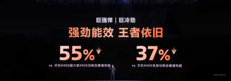 更难得的是,它强得冷静。借助更高容量缓存、动态调度与电压管理,天玑9500在上一代相同峰值下,超大核功耗下降最高 55%、多核功耗下降 37%。游戏团战 + 语音连麦双开、4K 高码率拍摄、视频通话与短视频刷刷刷这些重载场景里,它能一路满帧、温度可控,真正把“巨强悍,巨冷劲”落到每一次点击与每一帧画面里。