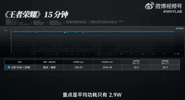 《王者荣耀》直接“满帧一条线”,平均功耗仅2.9W,堪称“轻松稳住”;