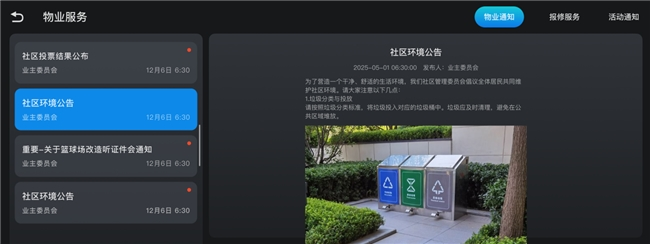 智慧屏更重新定义了社区服务体验,报修、缴费、物业通知、社区监控查看、联系物业等功能均能一键触达。比如告诉Max“我家的空调坏了”,系统即刻生成工单直达物业,比物业电话更加快捷。