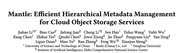 恭喜百度沧海・存储团队与中国科学技术大学、清华大学合作的论文《Mantle: Efficient Hierarchical Metadata Management for Cloud Object Storage Services》已正式被计算机系统领域顶级学术会议 SOSP'25(Symposium on Operating Systems Principles)录用!