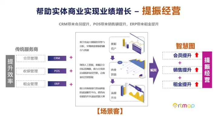 区别于1.0时代以系统部署为核心的传统服务商,智慧商业2.0时代智慧图更关注如何通过数字化平台的搭建,帮助实体商业实现高质量的经营,通过做好大数据应用,做优用户运营,实现实体商业的业绩增长、会员增长、销售增长、租金增长。