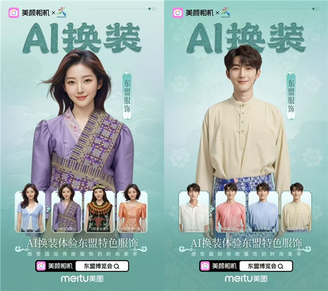 9月21日,在第22届中国—东盟博览会上,美图公司旗下美颜相机AI换装功能荣获优秀设计奖。在本届东博会上,美颜相机通过“AI换装”将印尼、老挝、柬埔寨、马来西亚、文莱、新加坡六国传统服饰数字化,展示了“科技赋能文化传播”的技术能力。