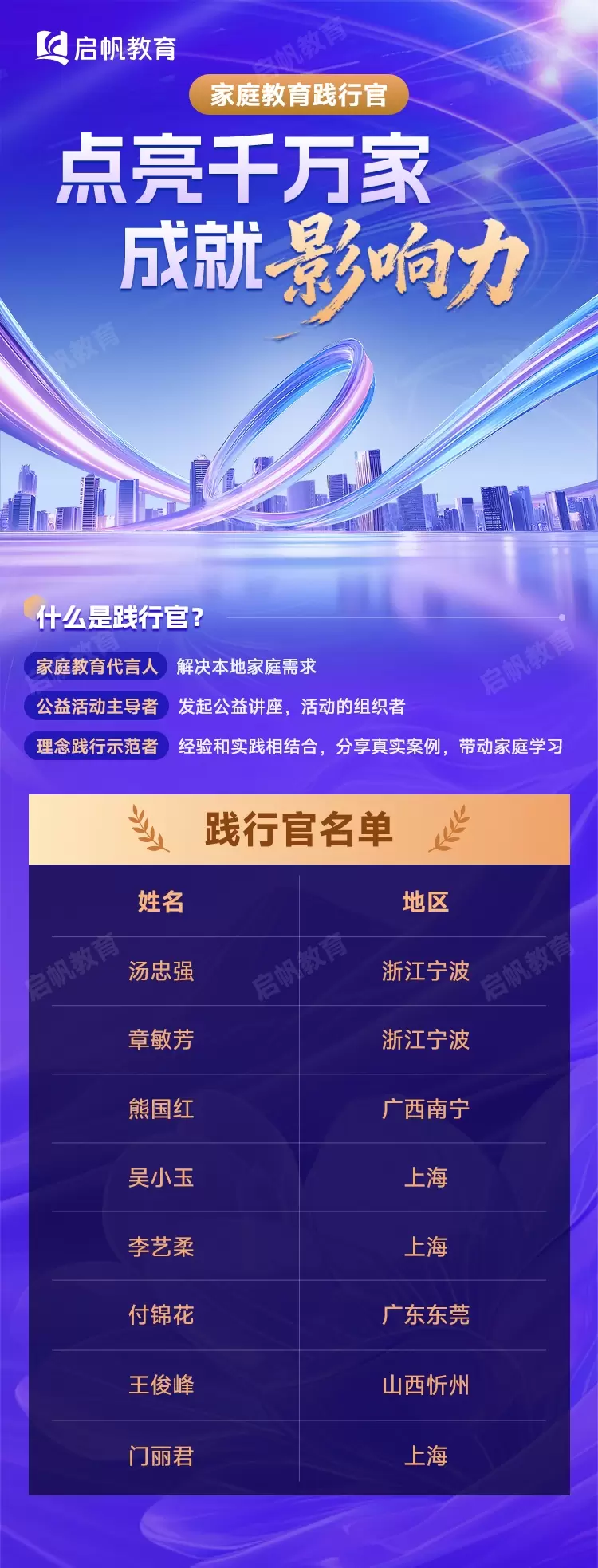 启帆教育首批家庭教育践行官名单正式出炉!共筑家庭教育新生态