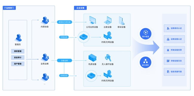 部署完成之后,我们将设备授权给对应的IT运维人员,实现责任到人,一个基本的远程运维管理框架就算搭建完成,全程不会超过数小时。