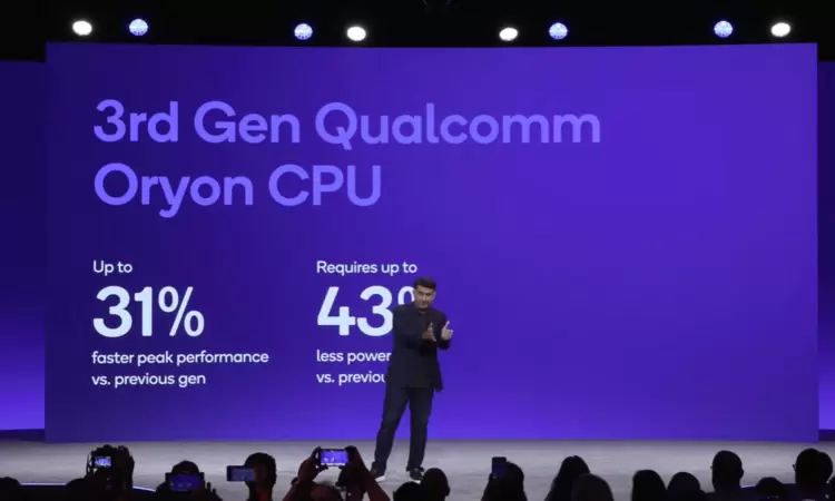 高通宣称这是"Windows电脑史上最快、最高效的处理器"。其3纳米芯片在相同功耗下比前代骁龙X Elite的CPU性能提升高达31%,或可降低43%功耗,同时全新1.85GHz GPU带来最高2.3倍的图形性能。CPU方面采用第三代Oryon架构,该架构也将用于高通新款移动旗舰芯片骁龙8 Elite 5,但此次PC版本最高配备18核心,其中12个核心频率可达4.4GHz,更有两个核心能飙升至5GHz。高通强调,这一主频在Arm架构CPU中尚属首次实现。
