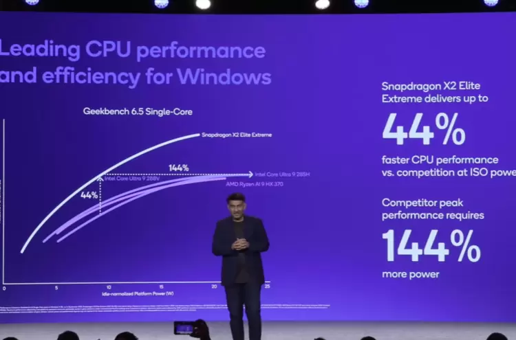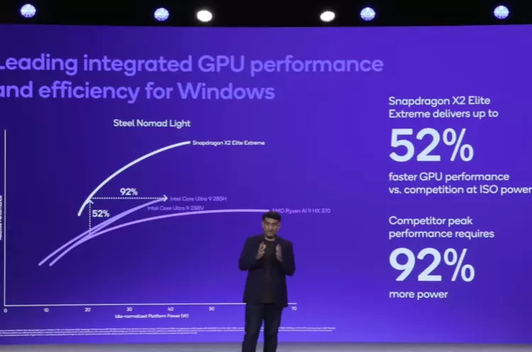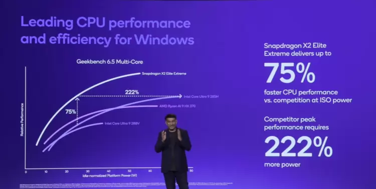 高通将这一切形容为性能上的传奇飞跃,特别强调Elite Extreme版本在相同功耗下可比竞争对手提供最高提升75%的CPU性能。