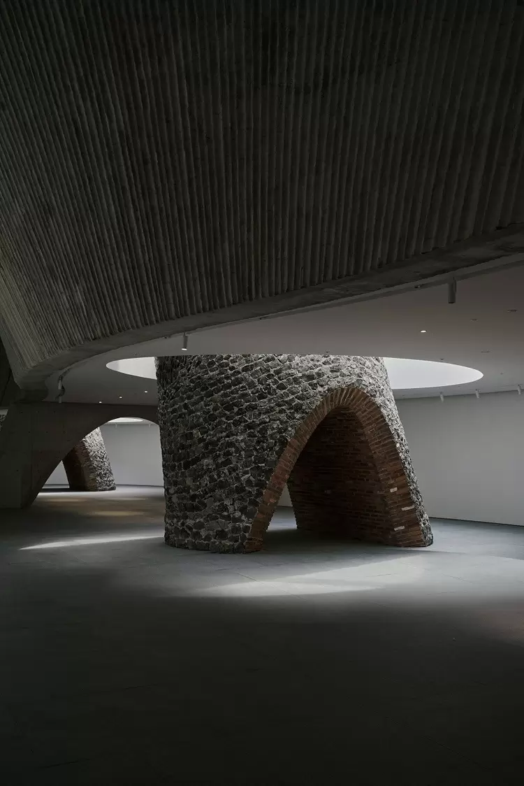 这个首次揭晓的「艺术秘境」—— 建筑如从自然中生长而出,砖石肌理勾勒流动轮廓,圆形半透明天窗引阳光漫入,光影在墙面流转间,让空间与艺术完成无声对话。