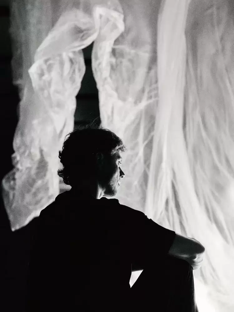 与艺术家马灵丽共创合作款,将褶皱的韵律,转化为服装的几何线条与立体结构。