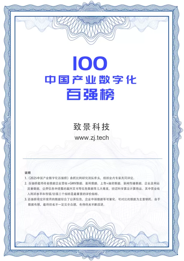 - 致景科技入选“2024年度数智化转型明星服务商”榜单