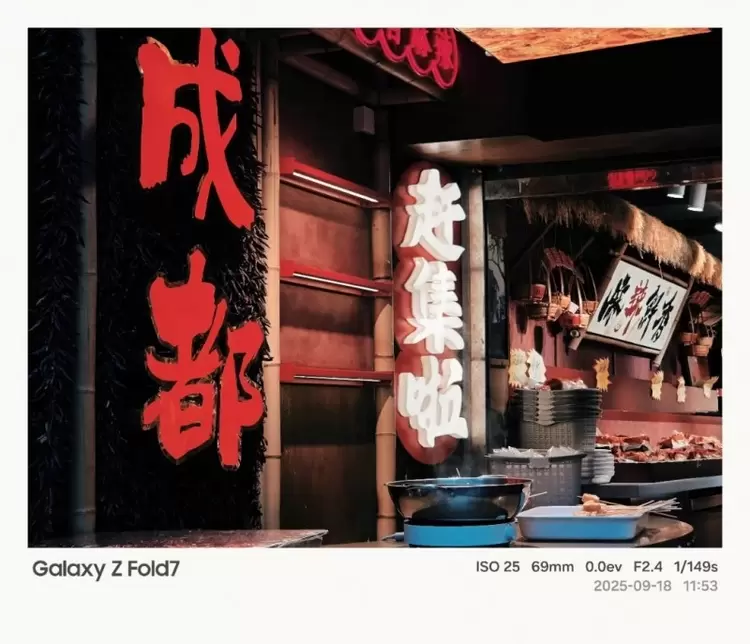 成都的美,蕴藏在细节之中。宽窄巷子屋檐滴水留下的痕迹、门前石狮雕刻的纹路、墙角砖缝里探出的青苔,这些沉淀了时光的元素,共同构成了蓉城独特的历史肌理。要精准捕捉并再现这份细腻,对移动影像设备提出了极高的要求。三星Galaxy Z Fold7给出的答案,是首次于Galaxy Z系列上搭载的2亿像素广角主摄像头。