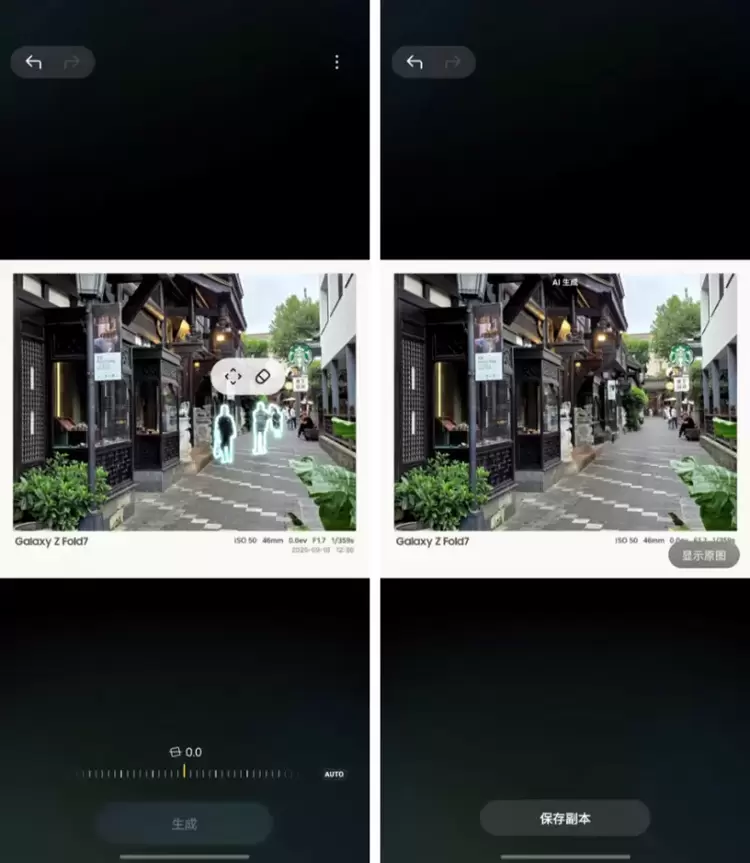 在宽窄巷子这样游人如织的景点,拍出背景干净的照片曾是一种奢望。而Galaxy AI的“生成式编辑”功能,能精准识别并一键消除画面中乱入的路人或杂物,并智能填充背景,让“废片”瞬间变为构图完美的大片。而全新的“AI头像”功能,则能将拍摄的人像或宠物照片,一键转化为水彩、卡通等多种艺术风格,为社交分享增添无限趣味。对于视频创作者,“音频橡皮擦”功能可以精准分离并消除环境噪音,让视频的声音更纯净,叙事更清晰。