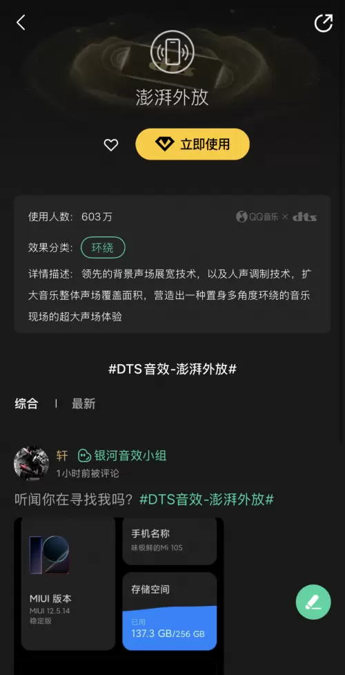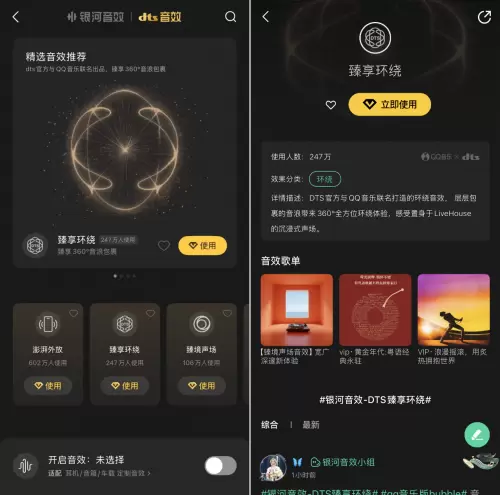 用户打开QQ音乐APP进入“音效”界面,点击“DTS音效“即可解锁以上三款联名音效,直观感受技术赋能下的至臻音乐享受。