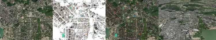 第一,系统首次将AI全面应用到航空领域的大规模数据资产生成。为解决原始卫星图数据流程中存在的准确度不足、检测信息丰富度不够等难题,腾讯游戏引擎技术团队训练了适合城市重建的AI图像分割和检测模型,通过图像生成大模型工作流,为训练场景生成提供了更准确、更丰富的城市数据,为高真实感训练环境奠定基础。