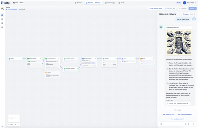 在RAGFlow输出结构化知识库的基础上,可以借助Dify,像拼乐高一样,快速搭建智能客服、合同审查、技术问答等应用。其可视化界面降低开发门槛,开发者可嵌入代码节点或调用API,实现更灵活的定制。