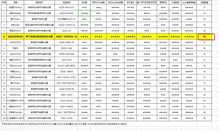 中国消费者协会最新发布的《家用燃气快速热水器比较试验报告》震撼出炉!在这场涵盖15个中外主流品牌、20款热门产品的权威测评中,老板电器强鼓燃热产品HD350A以总计38星的优异成绩,成为本次抽检中综合性能最出色的产品,彰显中国智造的全球竞争力。