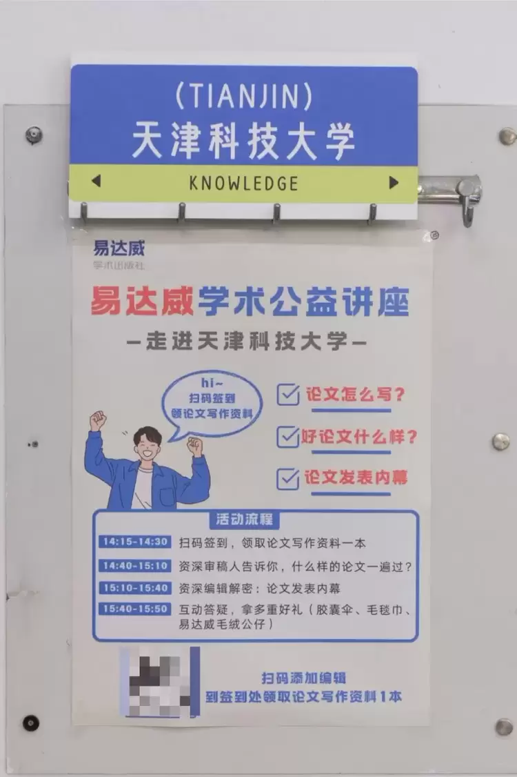为助力天津科技大学学子更好地开展论文写作与发表工作,9 月 25 日,易达威学术出版社在该校滨海中校区 3 号楼 110 教室举办了一场干货满满的学术公益讲座。