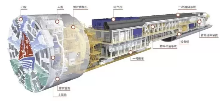 盾构机全称“盾构隧道掘进机”,主要用于地铁、公路、铁路、市政管道等地下隧道的挖掘(尤其是在软土层)。具有开挖切削土体、输送土渣、拼装隧道衬砌、导向纠偏等功能,可以实现高效、安全的地下施工。作为一种临时支撑结构,盾构机通常在隧道开挖阶段使用,直至隧道完成永久性结构铺设。