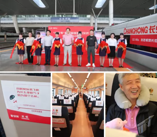 除了发布新品外,长虹x聚划算超级聚新 同时冠名了一列动车----长虹号列车。9月25日当天,铁路局相关领导、天猫黑电行业总监风虎和长虹相关领导共同剪彩,开启了长虹号专列。据当天乘坐该列车的乘客反馈,铺满段子的车厢真的太好玩,大家纷纷拿出手机拍照扫描h5看段子。乘客们纷纷表示这是一趟充满欢乐的旅途。