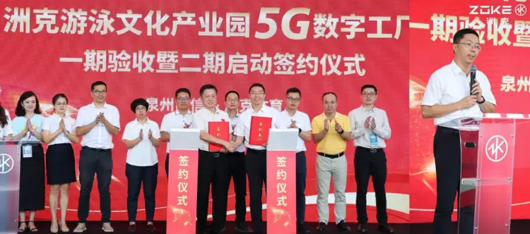 本次发布会中,隆重举行了洲克游泳文化产业园5G数字工厂一期验收暨二期启动签约仪式。在与会嘉宾的见证下,克拉克体育用品有限公司董事长刘瑞金与中国电信泉州分公司党委书记、总经理韩圣竹共同签署了二期合作协议。