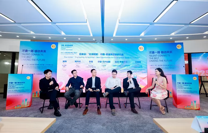在启动仪式后,活动举办了主题为“出海赋能:中国–西语系国家新机遇”的圆桌对话,邀请了Lilian Trade CEO伊恩·贝内加斯(Ian Venegas)、马德里弗朗西斯科·德·比多利亚大学学生迭戈·费盖劳尔(Diego Figueroa)、同济大学创新创业学院副院长李南,以及米粿AI产品负责人杨天和共同参与交流。嘉宾们结合各自领域的实践经验,围绕教育与产业合作、青年人才出海、跨境市场机遇与挑战等话题展开深入探讨。
