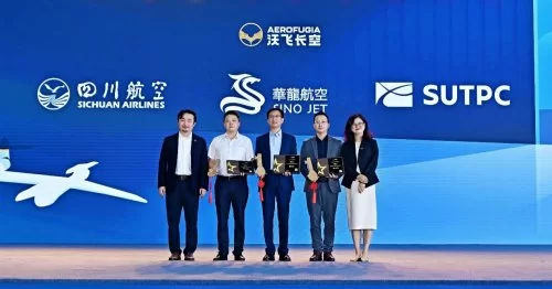 沃飞长空宣布目前AE200已储备千架商业订单,首年产能正有序释放并已获市场踊跃认购,订单覆盖成渝地区双城经济圈、长三角、珠三角、京津冀等重要经济区域。现场,沃飞长空向四川航空、华龙航空、深城交、泰国SIT等首批用户代表赠送了“首批用户纪念证书”,不仅是对首发用户信任的郑重回馈,更向行业传递了将加速推进商业化进程的信号。