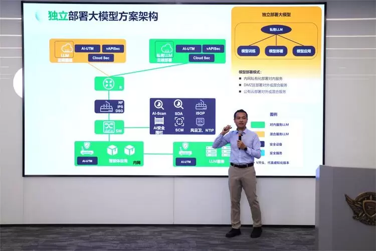 发布会以客户最为关心的大模型安全防护为目标,围绕政府、金融、运营商等关键领域的核心需求,系统地介绍了绿盟科技在总体规划、场景防护、技术产品和专业服务方面的思考与实践,为各单位和从业者提供参考,助力大模型在安全合规的轨道上稳健发展。