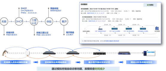 (2)模拟终端诊断:无需亲临现场,系统可远程模拟关键业务路径,快速诊断并定位故障根源。