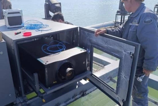 作为本次水幕秀投影系统的集成商,北京中清未来科技在Crimson WU32投影机的规划、安装和调试过程中发挥了关键作用。这些安装在湖心浮排上的投影机面临着大量水雾和湿气的挑战。为此,项目团队为其定制了配备恒温与冷却系统的防水外壳,有效调节内部温湿度,使其免受环境侵蚀,确保在各种天气条件下稳定运行。